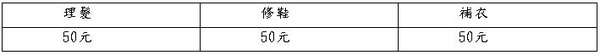 假設一般的消費收費如下: